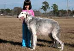 For many years, Lida had the distinction of being the oldest Sylvan Borzoi. She is pictured at a show in January 2004 with her young mistress Annaliese, having recently celebrated her FOURTEENTH Birthday!